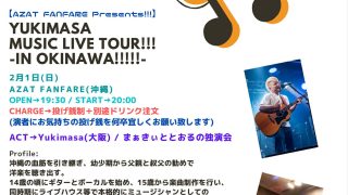 AZAT FANFARE Yukimasa Music Live Tour-IN OKINAWA- 2026年2月1日(日)場所:AZAT FANFAREOPEN 19:00 / START 20:00CHARGE 投げ銭制+別途ドリンク注文昨年ご一緒()させていただいた YUKIMASAさんに誘われて、前日1/31から引き続きオープニン... 2026.01.16 AZAT FANFARELive